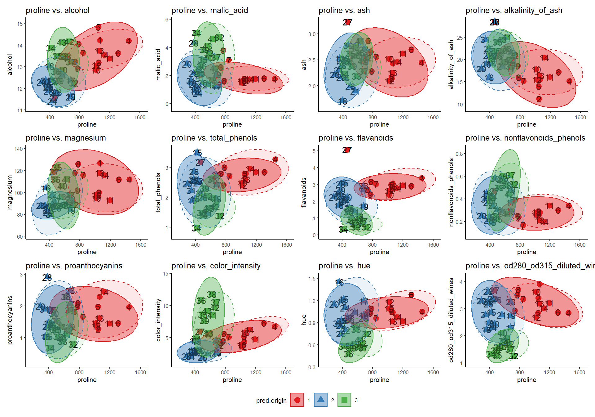 $ Proline <dbl> 1065, 1050, 1185, 1480, 735, 1450, 1290, 129…