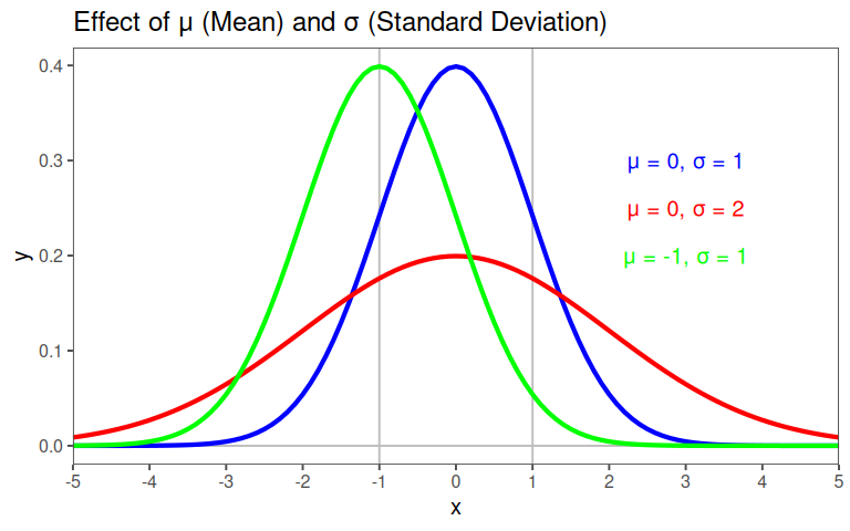 Normal Distribution The Normal Distribution is characterized by its mean (\(\mu\)) and standard deviation (\(\sigma\)), see Figure 2.42. It serves as the foundation for many statistical analyses.