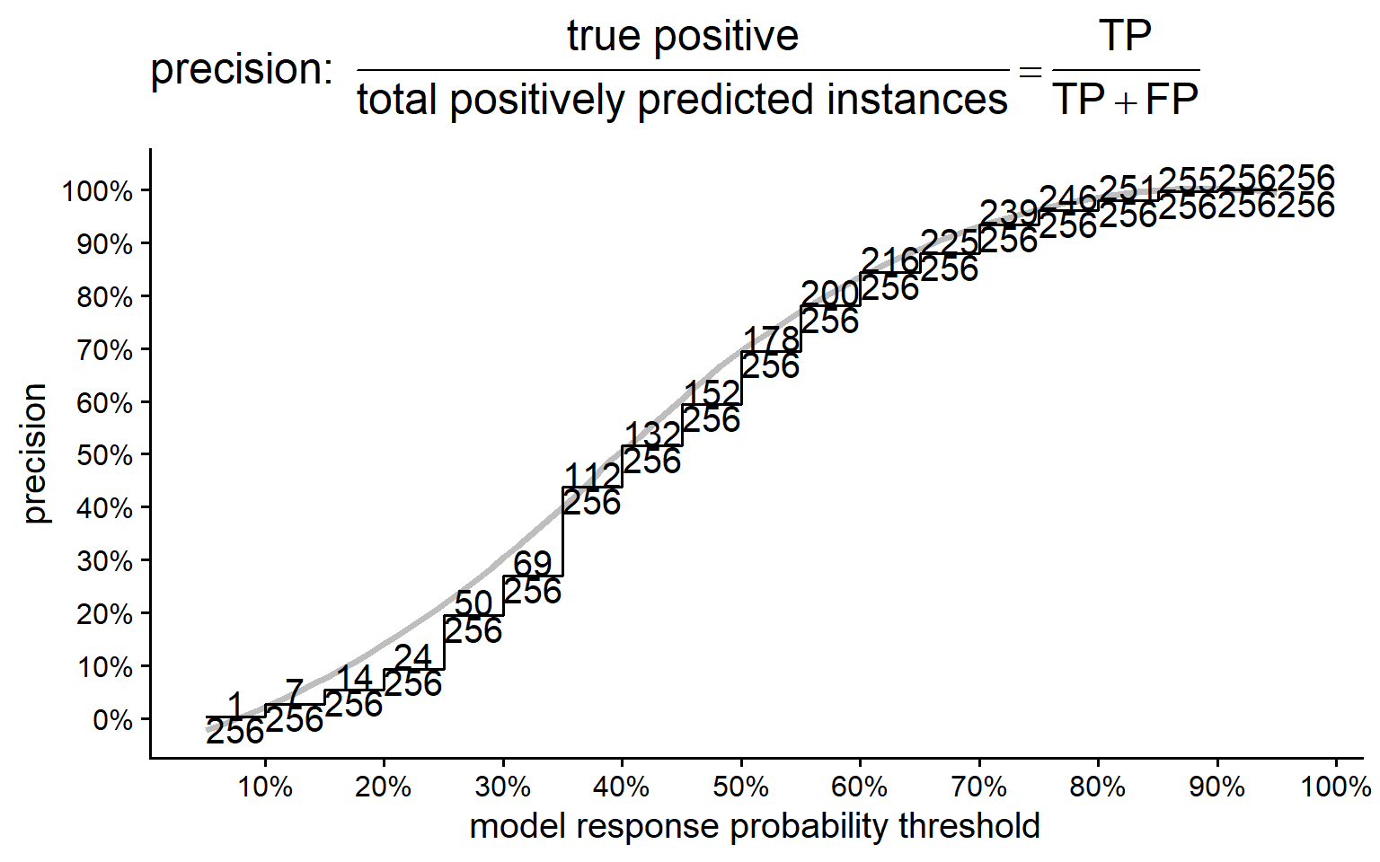 \[\frac{TP}{TP+FP}\]