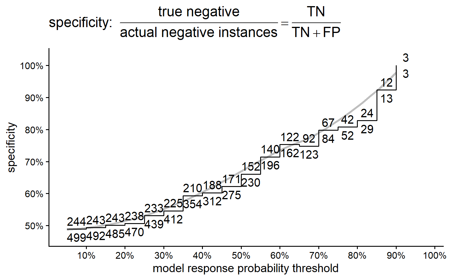 \[\frac{TN}{TN+FP}\]