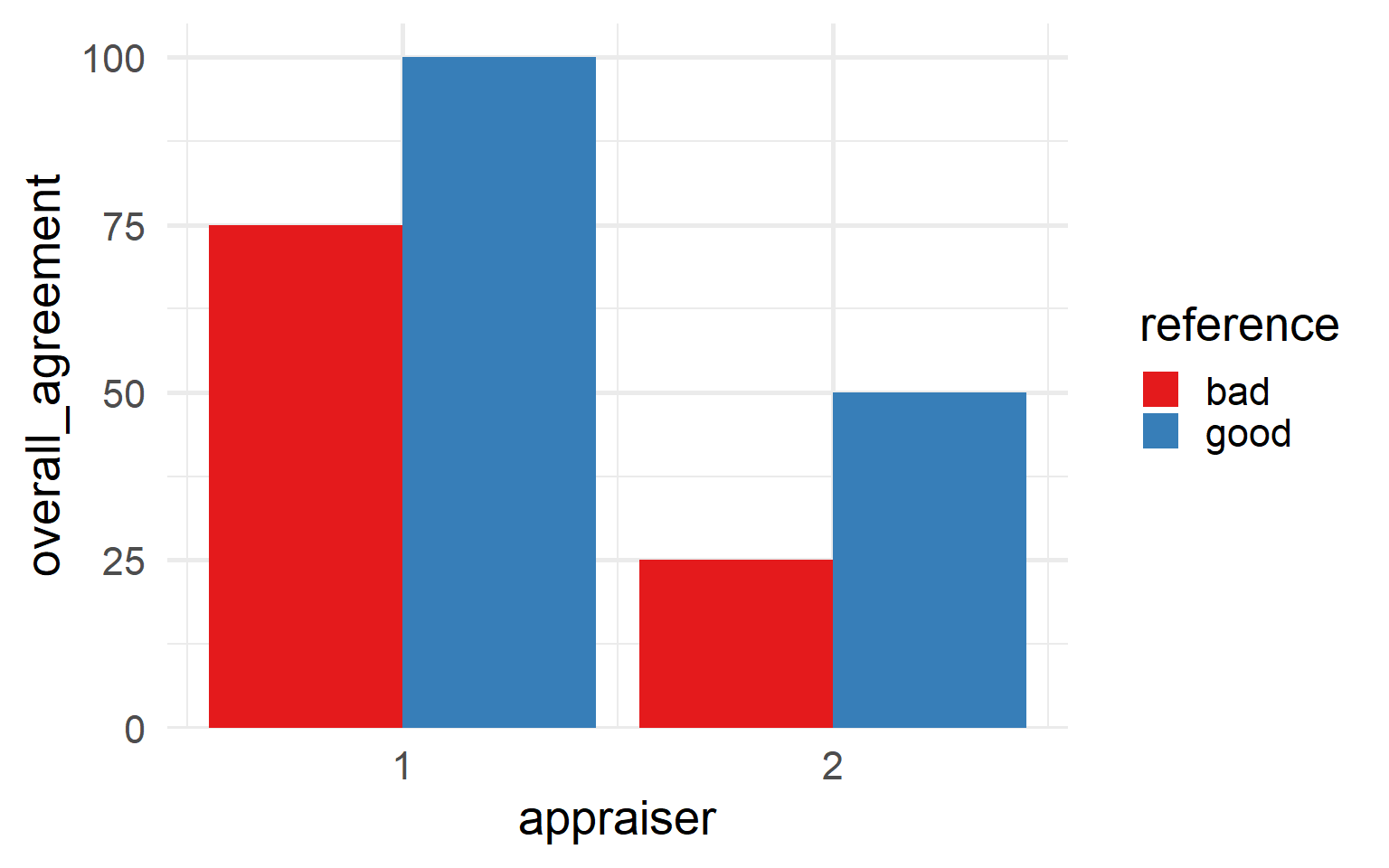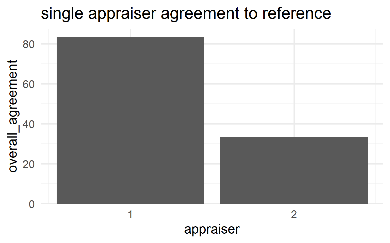 \[\begin{align} Agreement_{appraiser \; ref} = 100 \times \frac{X}{N} \end{align}\]