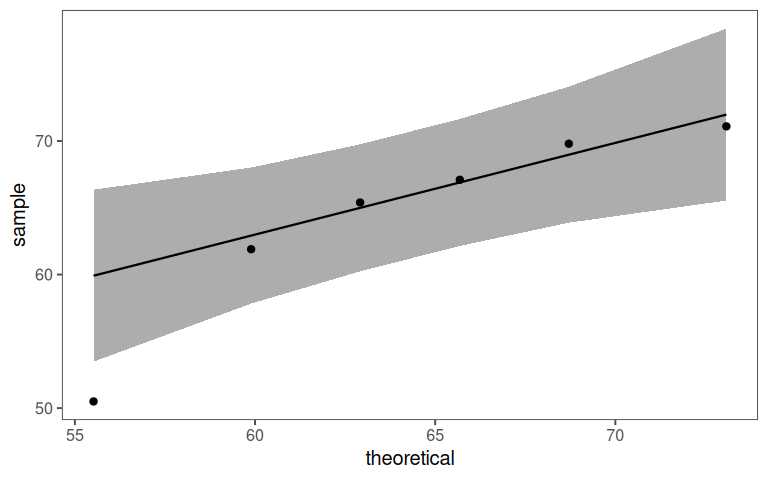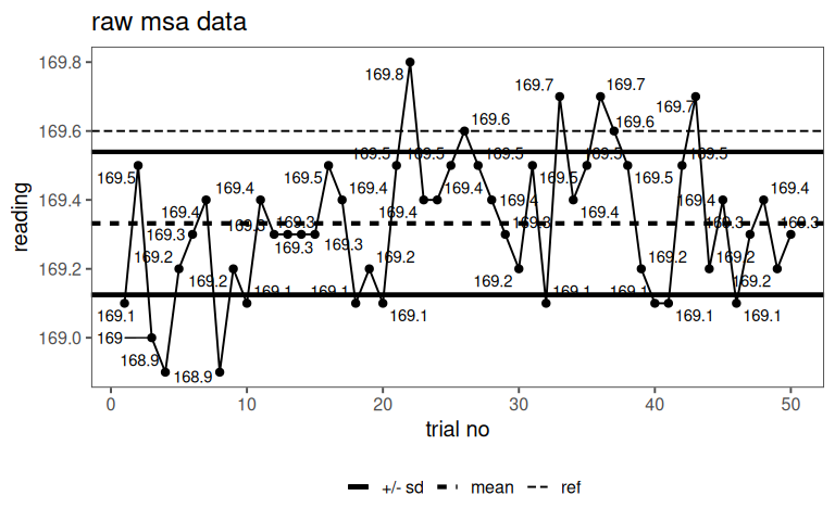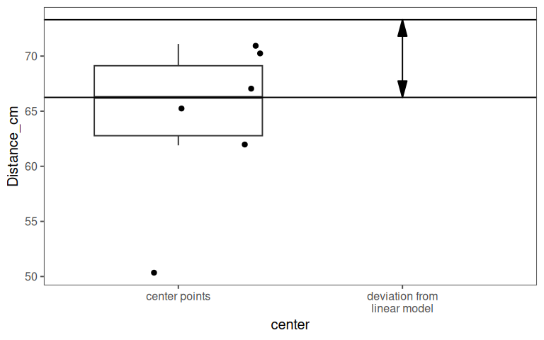 With a p value of \(0.032\) the center points deviate significantly from the linear model by about \(9cm\).